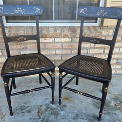 Set of 2 Antique Hitchcock Handpainted Gilt Gold Accent Caned Chairs Made in Italy for Ballard Designs $335New Orleans, LA