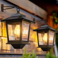 Set of 2 Solar-Powered Wall Lanterns with Glass Bulb,Outdoor Hanging Lights Equipped with 4 Solar Panels, LED Wall Sconces That Operate from Dusk Till$25Marrero, LA