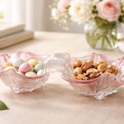 Mikasa Japan 1990s Rosella Pink Frosted Double Bowl Candy Relish Dish, 11x7x3โ$15Natick, MA