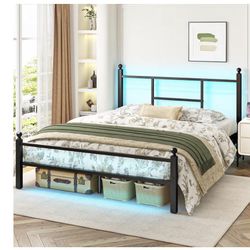 Queen Metal Bed Frame w/ Storage & Charging Station – Must Go $90Revere, MA