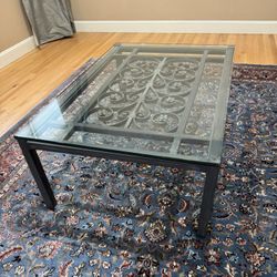 Vintage Glass & Iron Coffee Table – Heavy Solid 44”$300Newton, MA