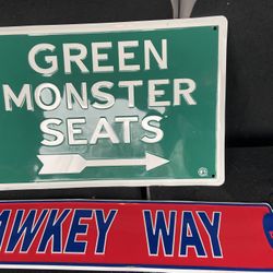 2 tin Boston Red Sox signs green green monster seats this way & red yawkey way collectible man cave $20Arlington, MA