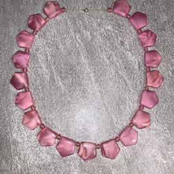 RARE 14k Gold Pink Moonstone GLOW Slag Glass PENTAGON Porphyry ART DECO Necklace$499Arlington, MA