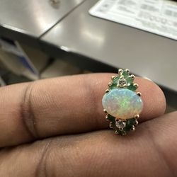 14K Yellow Gold Natural Opal Emerald and Diamond Art Deco Style Halo Ring$400Bridgewater, MA