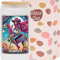 Glass Cup Gifts for Women Girls, 16 Oz the Cowgirl Theme Frosted Glass Cups with Lids Straws, Gothic Skull Halloween Tumbler Birthda$10Pawtucket, RI