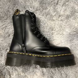 Black Pleather Combat Boots With Silver Shoe Strings$19Dorchestr Ctr, MA