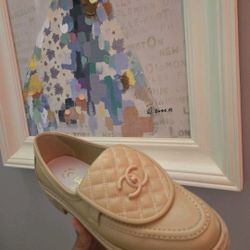 Chanel CC Logo Quilted Leather Beige Nude Moccasin Shoes Size 39 US 8$425Framingham, MA