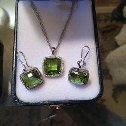 18kt White Gold Diamond & Peridot Pendant/earrings/ Ring $1,200Roxbury Crossing, MA