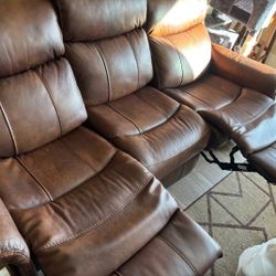 Dark Brown Leather Reclining Sofa & Loveseat Set w/ Cup Holders$800Lynn, MA