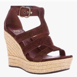 UGG Tawnie Brown Suede Espadrille Platform Wedge Boho Sandals Size US 9