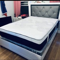 Set Queen Size bed Frame( Heard board LED Light)Mattress BRANDED Pillow Top 13”thick Brand New In Box Delivery 🚚 Available All Cities.$799Cambridge, MA