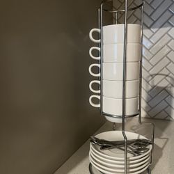 Malacasa 8oz Porcelain Espresso Cups With Saucers And Metal Stand, Set Of 5$10Stoneham, MA