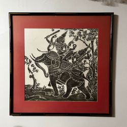 Framed Black & White Elephant Warrior Art – Red Mat, Gold-Trimmed Frame$200Belmont, MA