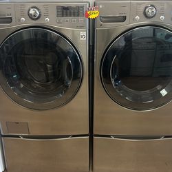 LG gray Electric Washer & Electric Dryer combo Set with Storage compartment and$750Boston, MA