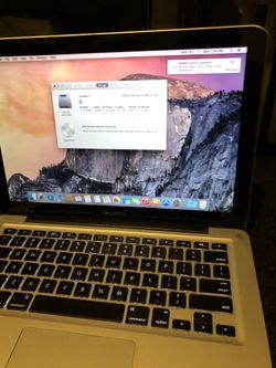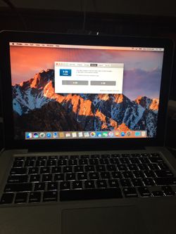 13 inches MacBook Pro version 10.12.4 macOS Sierra. Processor 2.66 GHz intel core 2 duo. 6 GB memory ram 200 GB hardrive$300Boston, MA