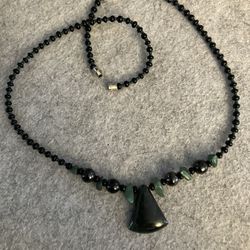 Black Glass Beads Green Adventurine Necklace $40Springfield, MA