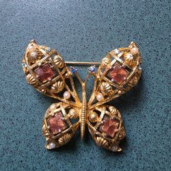 Kenneth Jay Lane USA 1960s Statement Dragonfly Enamel Rhinestone Brooch, 3.25”$125Natick, MA