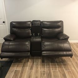 Brown Leather Reclining Loveseat w/ Console & Cup Holders$500Lynn, MA