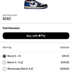 Nike Air Jordan 1 union fragment design$300Boston, MA