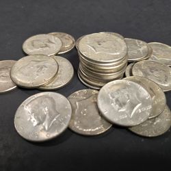Coin Collection(19 Kennedy Half Dollars, 1946 Walking Liberty 1/2 Dollar, 1853 One Cent Coin, 4 Mercury Dimes 1942$100Avon, MA