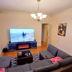 Moving - Living Room Theater Set-up For Sale - Samsung 85" TV 5.1 Vizio Custom Fireplace & Couch$800Newton, MA