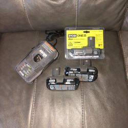 Ryobi 18v Charger And 3 Batteries 1 New Battery Drill Impact Saw Mower Trimmer Tools 18 Volt $100Tewksbury, MA
