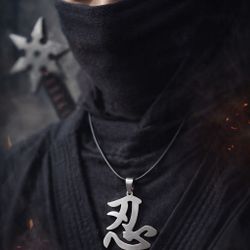 Vintage 1990s Japanese Kanji “忍” Stainless Steel Pendant Necklace$27Natick, MA