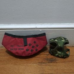 Red Travel Water Bowl And Small Camouflage Harness For Pets$10Revere, MA