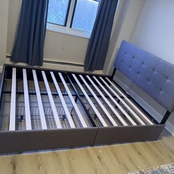 King Size Upholstered Platform Bed Frame w/ Headboard – Excellent Condition (Less than 1 year old)$130Winter Hill, MA