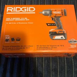 RiDGID 18v 3-Speed 1/2” Impact Wrench, Kit 4AH Battery And Charger And Tool Bag included$120Andover, MA