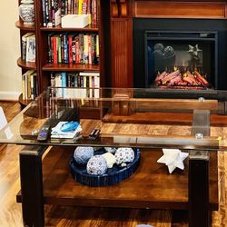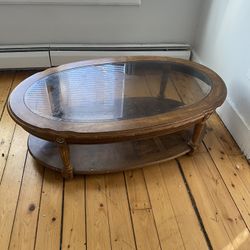 Solid Wood And Leather Coffee Table Glass Top$30Middletown, RI