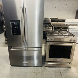 KitchenAid refrigerator, natural gas stove, and electric oven, stainless steel, with a receipt for a 60-day warranty$2,500Salem, MA