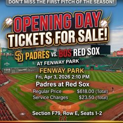 Boston Red Sox Opening Day Tickets! FENWAY PARK, Apr 3, 2026 - Section F79, Row E 🏟️$230Andover, MA