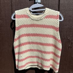 La Miel Striped Knit Sweater Vest Cream Pink Crochet Sleeveless Pullover Size S$20Woburn, MA