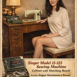 Vintage Singer 401A Slant-O-Matic Sewing Machine w/ Cabinet & Matching Stool – Convertible Table w/ Glass Top$250Peabody, MA