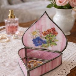 Vintage 1970s Pink Slag Striated Glass Heart Trinket Box, 5.5x2.5”$24Natick, MA