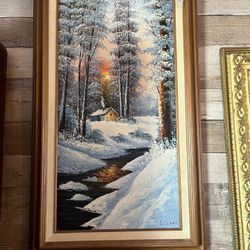 Beautiful Vintage framed original winter scenery painting frame size 29 x 17 in signed by L.Levi$79Lowell, MA