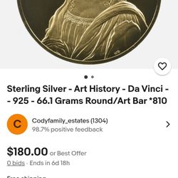 Sterling Silver Art ๐จ๐ญ History -Da Vinci's Mona Lisa 925 66.1 Grams Round/Art Bar $350Boston, MA