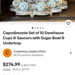 Capodimonte Set Of 10 Demitasse Cups & Saucers With Sugar Bowl & Undertray$550Boston, MA