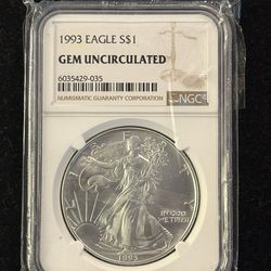 1993 Silver Eagle NGC GEM Uncirculated$80Lynn, MA