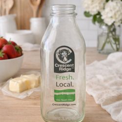 Crescent Ridge Dairy USA 2010s Clear Glass Quart Milk Bottle, 2x9”$10Natick, MA