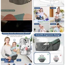 Baby Carrier with Hip Seat, Ergonomic Front Carrier for Newborns & Toddlers, Adjustable Waistband with Strong Support, Large Pocket Design, Grey$13Everett, MA