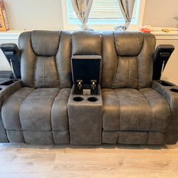 Dual Power Reclining Loveseat with Console. Original value $1600$700Chelsea, MA