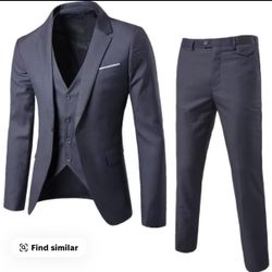 Men's Suit Set Three-Piece Casual Solid Color Slim Fit Formal Suit Groom Stylish Wedding Suit Trendy Mens Medium - Grey$50New Britain, CT