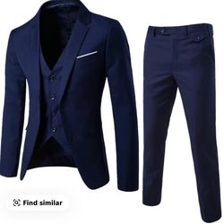 Men's Suit Set Three-Piece Casual Solid Color Slim Fit Formal Suit Groom Stylish Wedding Suit Trendy Mens Medium - Navy Blue$50New Britain, CT