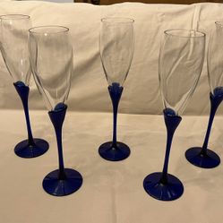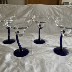 LIBBEY Cobalt Blue 4 BRAVURA Margarita Champagne Curved Stem Glasses 7 1/4 "$44South Windsor, CT