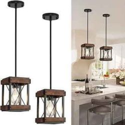 Farmhouse modern Pendant Light, 2 Pack Rustic Chandelier with Wood and Metal Cage, Kitchen Island$30Manchester, CT