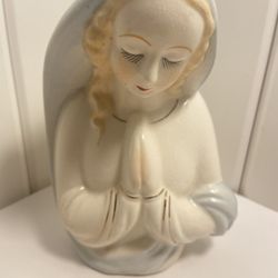 Vintage vase planter Praying Woman religious Ceramic Gold outline old crazing $3Glastonbury, CT