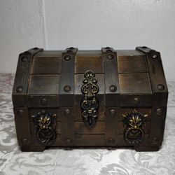 Vintage Pirate Treasure Chest Trinket Jewelry Box Gothic Style Metal and Wood Lion Design$30Enfield, CT