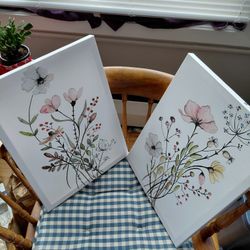 2 Unframed Floral Pictures With Hooks on them.$5Spfld (long), MA